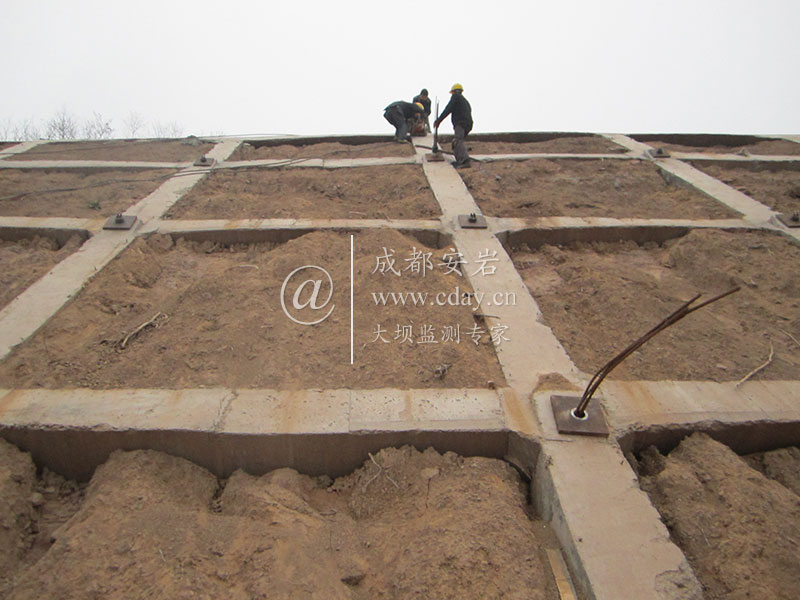 2012年,安巖物聯(lián)為中鐵八局蘭渝鐵路廣元西站大型邊坡(七級及五級邊坡等)提供大批量巖土工程安全監(jiān)測儀器:包括錨索測力計(jì)、多點(diǎn)位移計(jì)、水工屏蔽電纜、MCU分布式測量單元、GPRS無線數(shù)據(jù)采集系統(tǒng)等。圖為安裝現(xiàn)場。